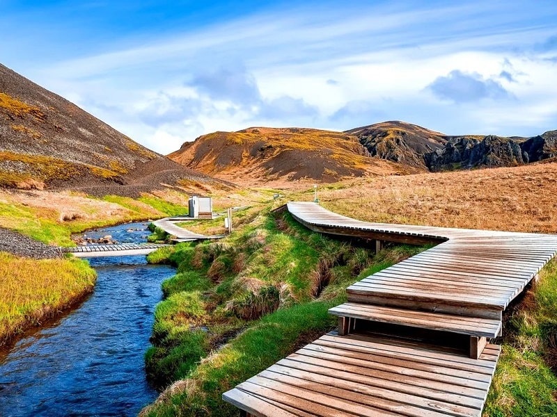 Karsto avotu piedzīvojums. No rīta dosimies atpakaļ Reikjavikas virzienā. Izstaigāsim Reykjadalur karsto avotu ieleju. Tur mūs gaida aptuveni 3,5 stundu (10 km) pārgājiens turp-atpakaļ līdz siltajām upēm, kur varēsim baudīt relaksējošu peldi un atpūtu vismaz stundu. Šī pieredze ļaus izjust Islandes dabas spēku, pastaigājoties pa vulkāniskām takām, dūmakaino ieleju un siltajām avotu ūdeņu burvību. Vakarā baudīsim Reikjavikas pilsētas šarmu, pastaigājoties pa centrālajām ielām, apskatot krāsainās mājas, kultūras objektus un vietējo dzīves ritmu.